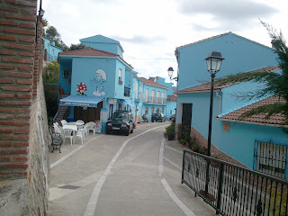 ... ja se oli aika tyylikäs. Sony julkaisi 2011 Smurffit- elokuvan 3d:nä ja sitä mainostaakseen maalautti täällä Andalusiassa Juzcàr-nimisen kylän kokonaan siniseksi. Elokuvan maailmanensi-ilta oli myös kyseisessä kylässä. Kylässä on vain 250 asukasta, jotka kuulemma olivat hyvin mielissään kylänsä äkillisestä maailmanmaineesta. Sony tarjoutui maalauttamaan kylän takaisin valkoiseksi, mutta halusivat kyläläiset säilyttää turkoosin värin, toivoen että se toisi turisteja vielä lisää. Veikkaanpa, että Sony samalla vähän restauroi kylää, sen verran uuden näköiset on katot.